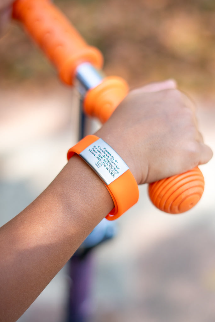 Este brazalete esta diseñado para ofrecer tranquilidad en cualquier situación de emergencia. ideal para llevar siempre en la muñeca con las condiciones médicas y de contacto.